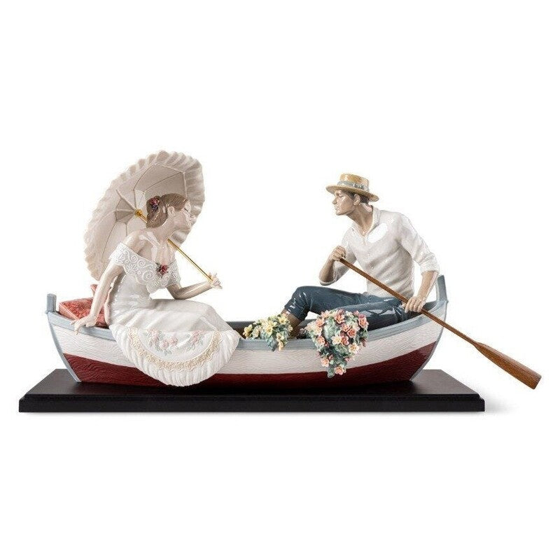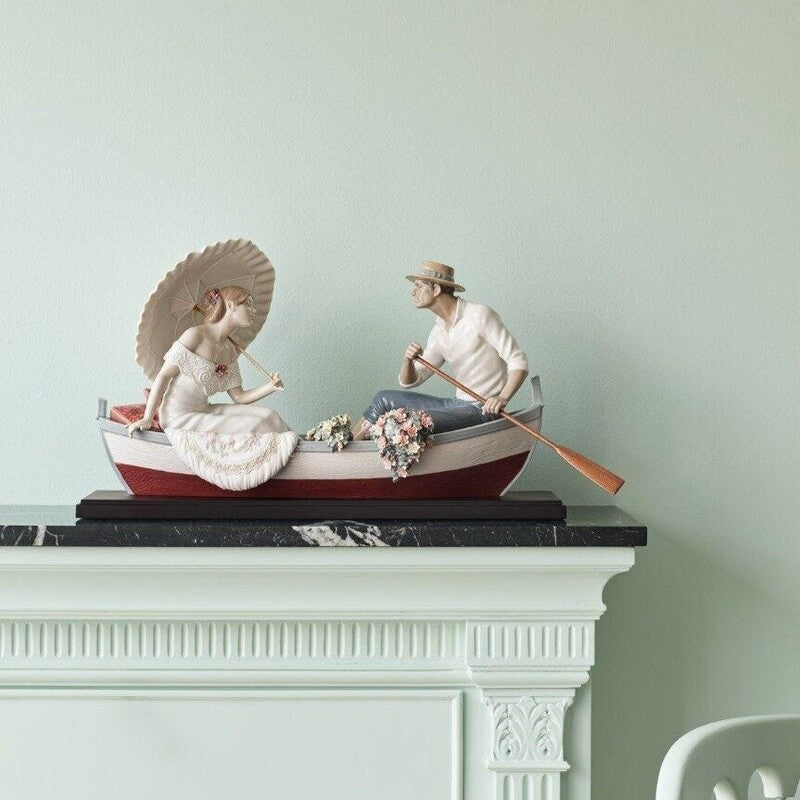 Scultura Romanticismo sul Lago appartente alla collezione di Lladrò Limited Edition, realizzata in porcellana lucida che rappresenta un romantico giro in barca.