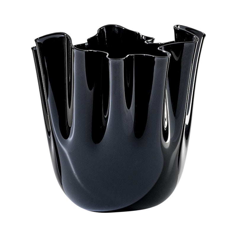 Vaso Fazzoletto Nero con interno nero di Venini, realizzato in vetro soffiato, lavorato a mano e disegnato da Fulvio Bianconi.