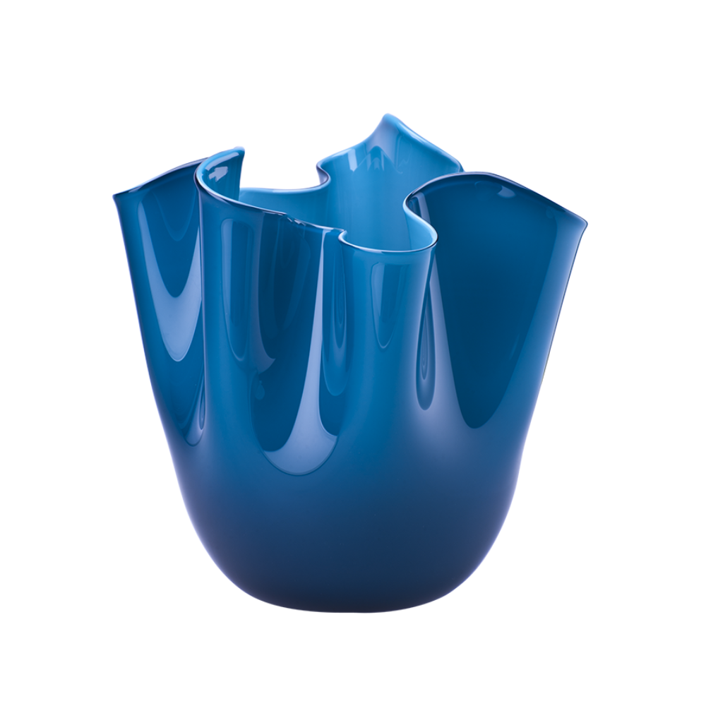 La suggestiva rielaborazione della tecnica Opalini del XV secolo lo rende unico nel colore. Il genio di Fulvio Bianconi lo rende inimitabile nella forma, plasmata come le gonne mosse dal vento. Tanto che di ogni Fazzoletto Opalini non ne esiste uno identico in tutto il mondo.