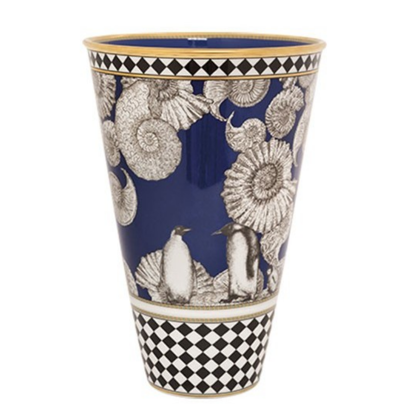 Vaso appartenente alla collezione Totem Pinguino di Richard Ginori, realizzato in porcellana lucida decorata.