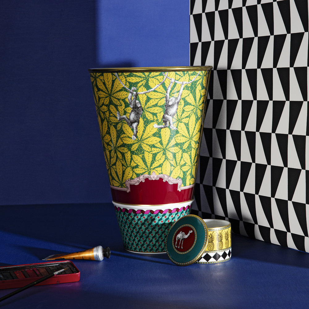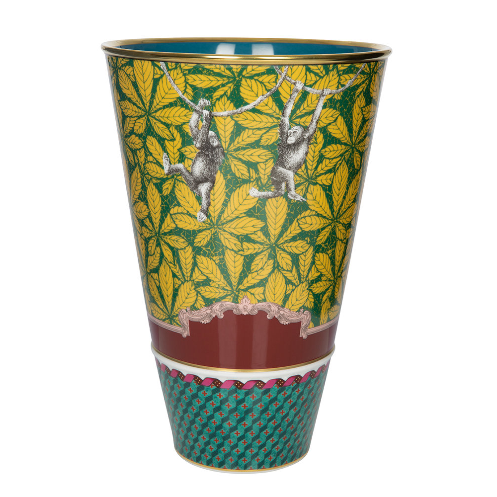 Vaso appartenente alla collezione "Totem Scimmia" di Richard Ginori, realizzato in porcellana lucida, con altezza 30,5 cm.