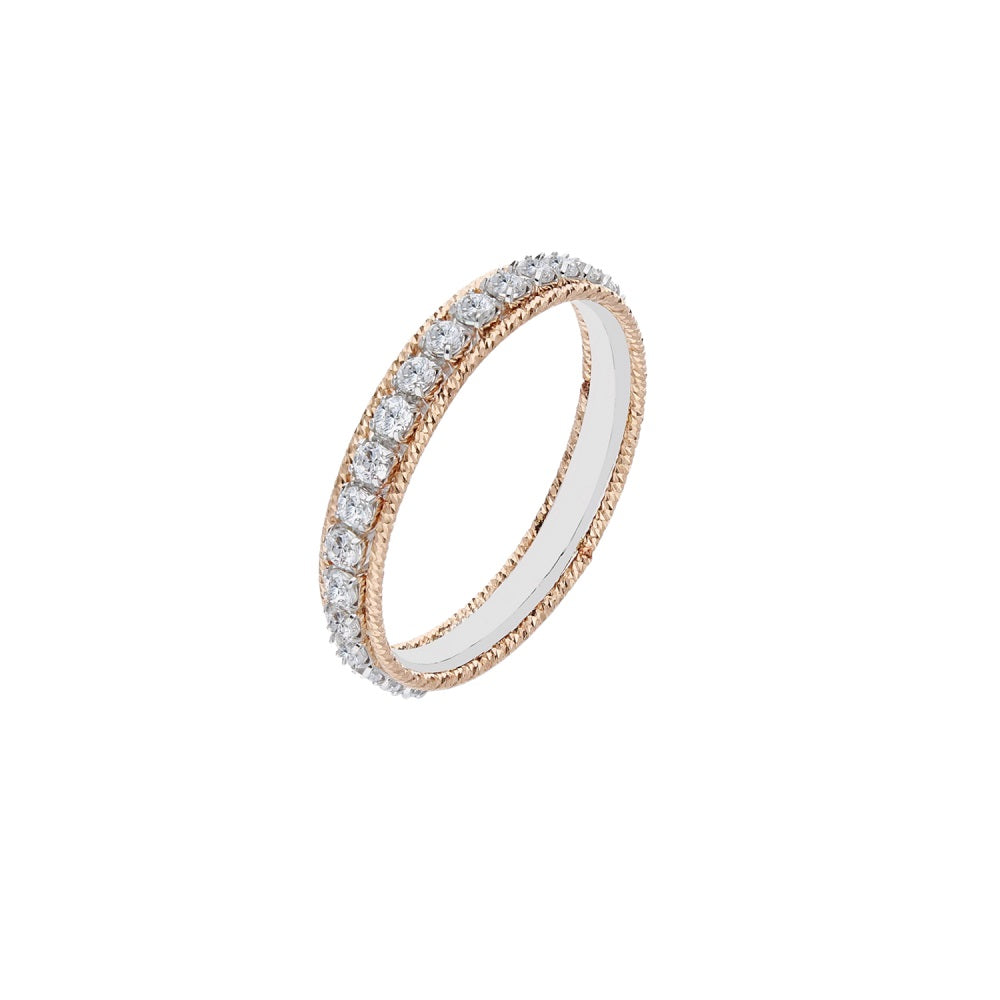 Il gioiello è caratterizzato da un filo diamantato in Oro Rosa 18kt e una finitura lucida ed è impreziosito da pavè di cristalli bianchi.