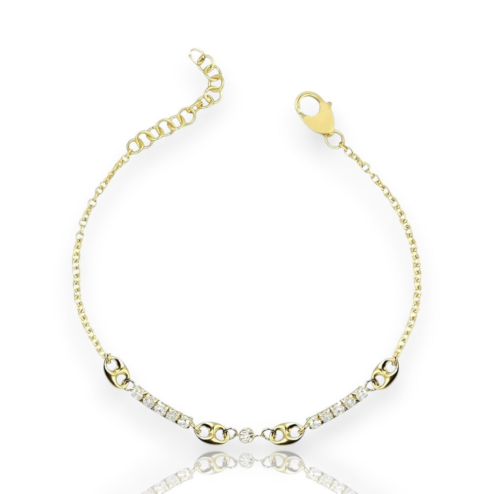 Bracciale della collezione Prestigio Gioielli, realizzato in Argento 925% rodiato in Oro Giallo 18 kt., con maglia marinara centrale, impreziosito da zirconi bianchi.