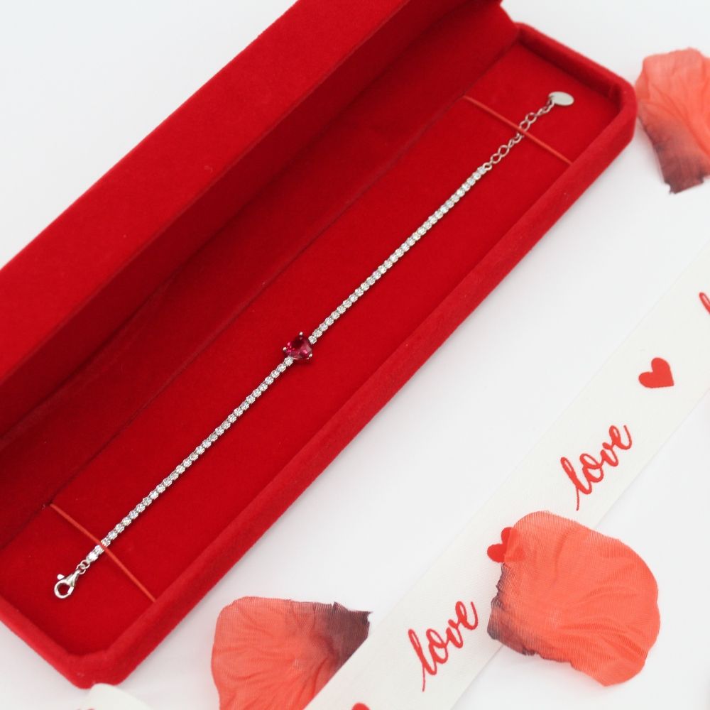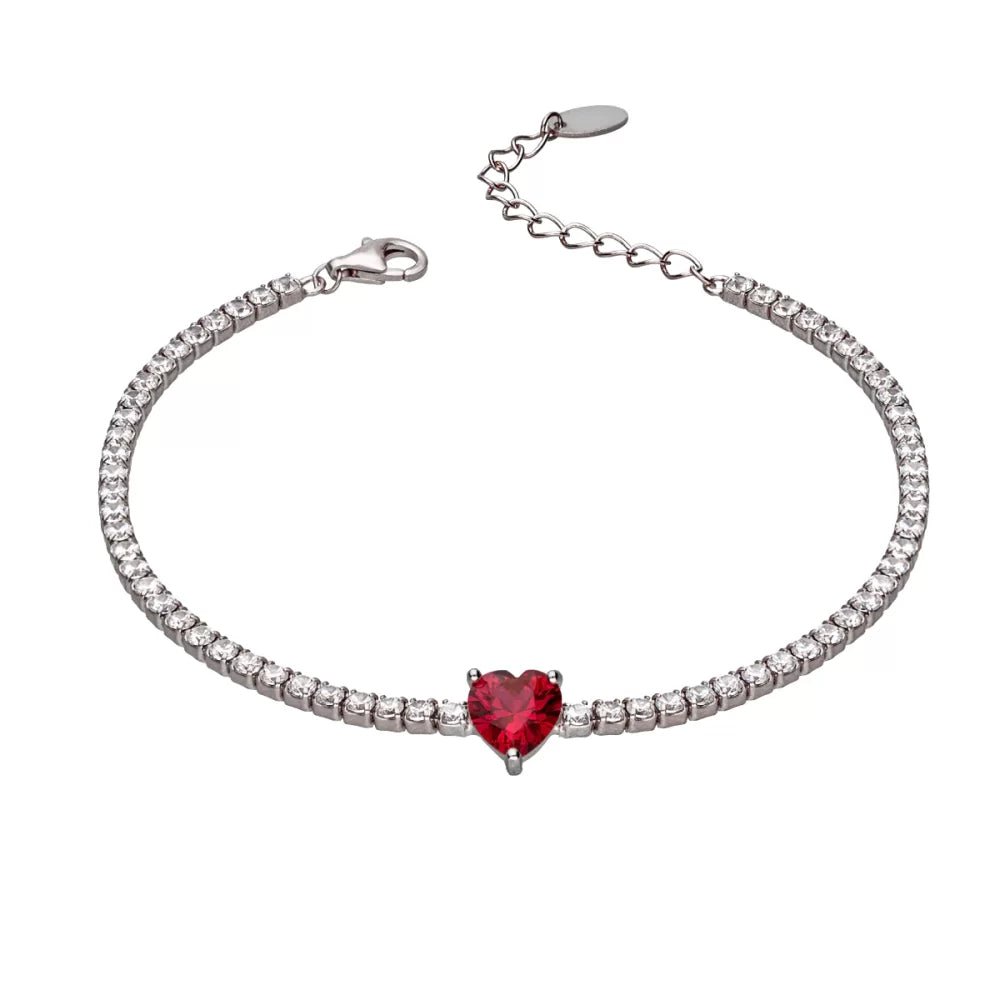 Bracciale Tennis Con Cuore Rosso "Diamond Heart" in Argento 925%