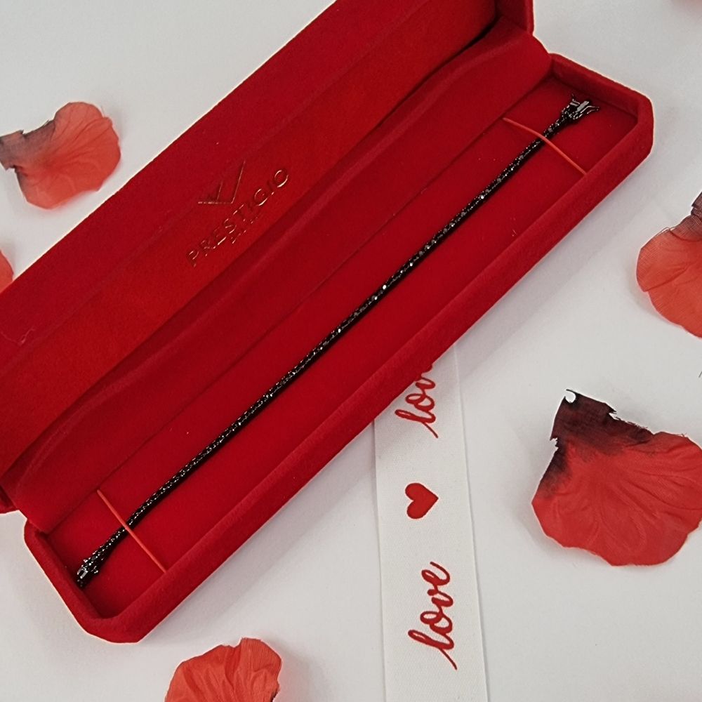 Bracciale Tennis della collezione "Diamond" di Prestigio Gioielli, Argento 925% Brunito rodiato in Oro 18kt, con pietre Swarovski di colore nero.