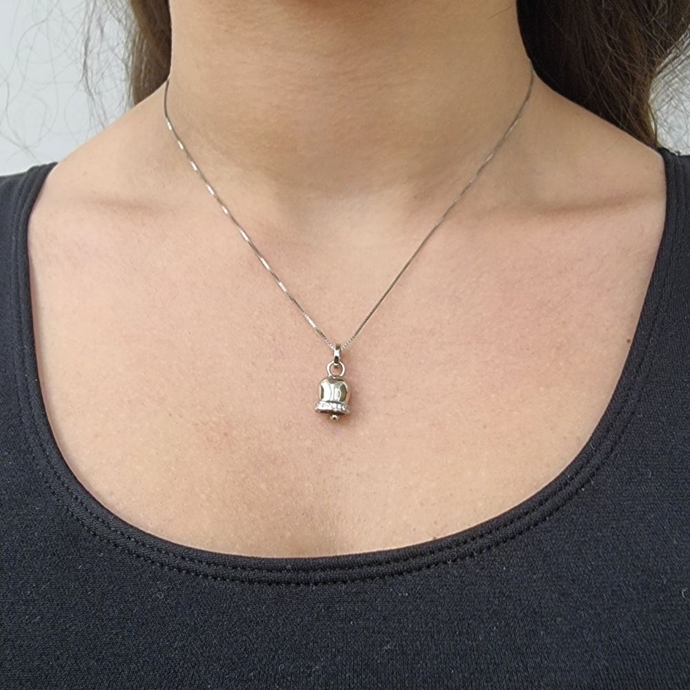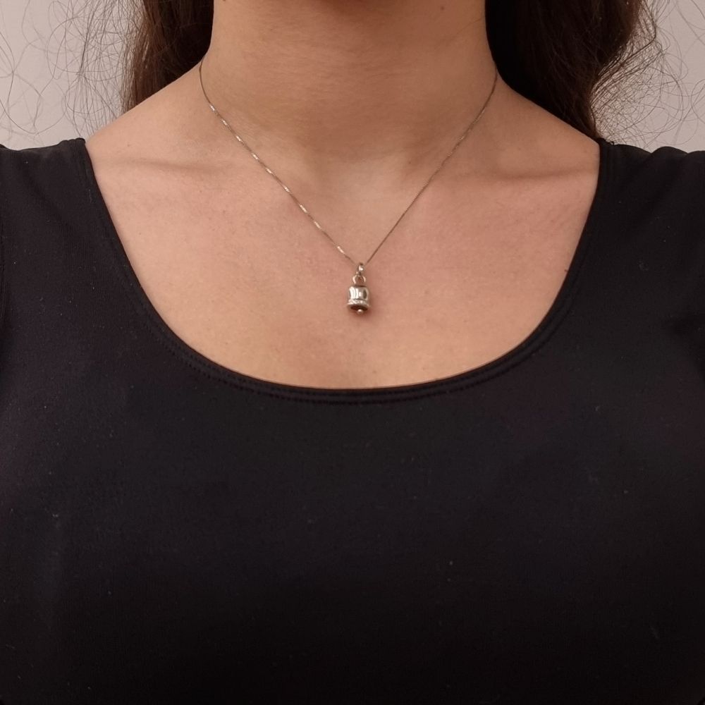 La Collana presenta una lunghezza di 40+3 cm ed ha come charm una graziosa campanella impreziosita da Swarovski bianchi.