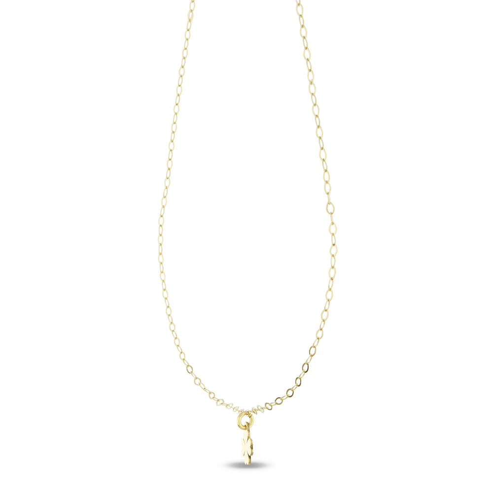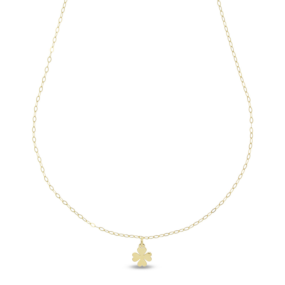 Collana con quadrifoglio realizzata in Oro Giallo 18 kt. della collezione Mini Charms di Prestigio Gioielli, con finitura lucida.