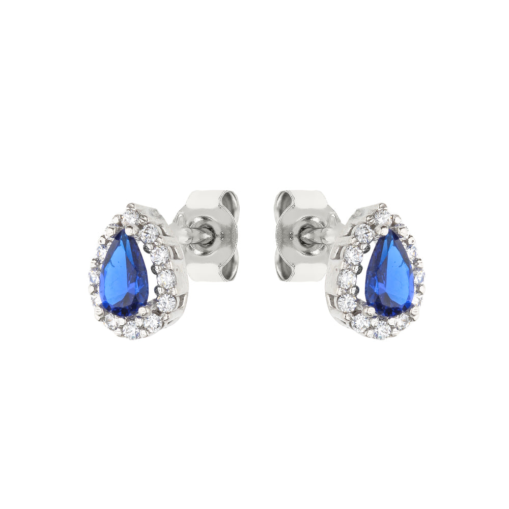 Il gioiello è a forma di cuore caratterizzato da una pietra centrale di colore blu, impreziosita da una fila di zirconi bianchi con chiusura perno e farfallina.