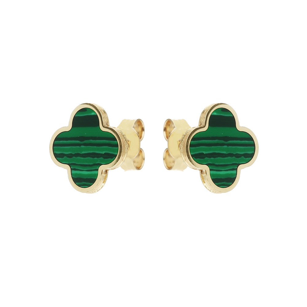 Orecchini Quadrifogli Malachite Oro 18 kt.