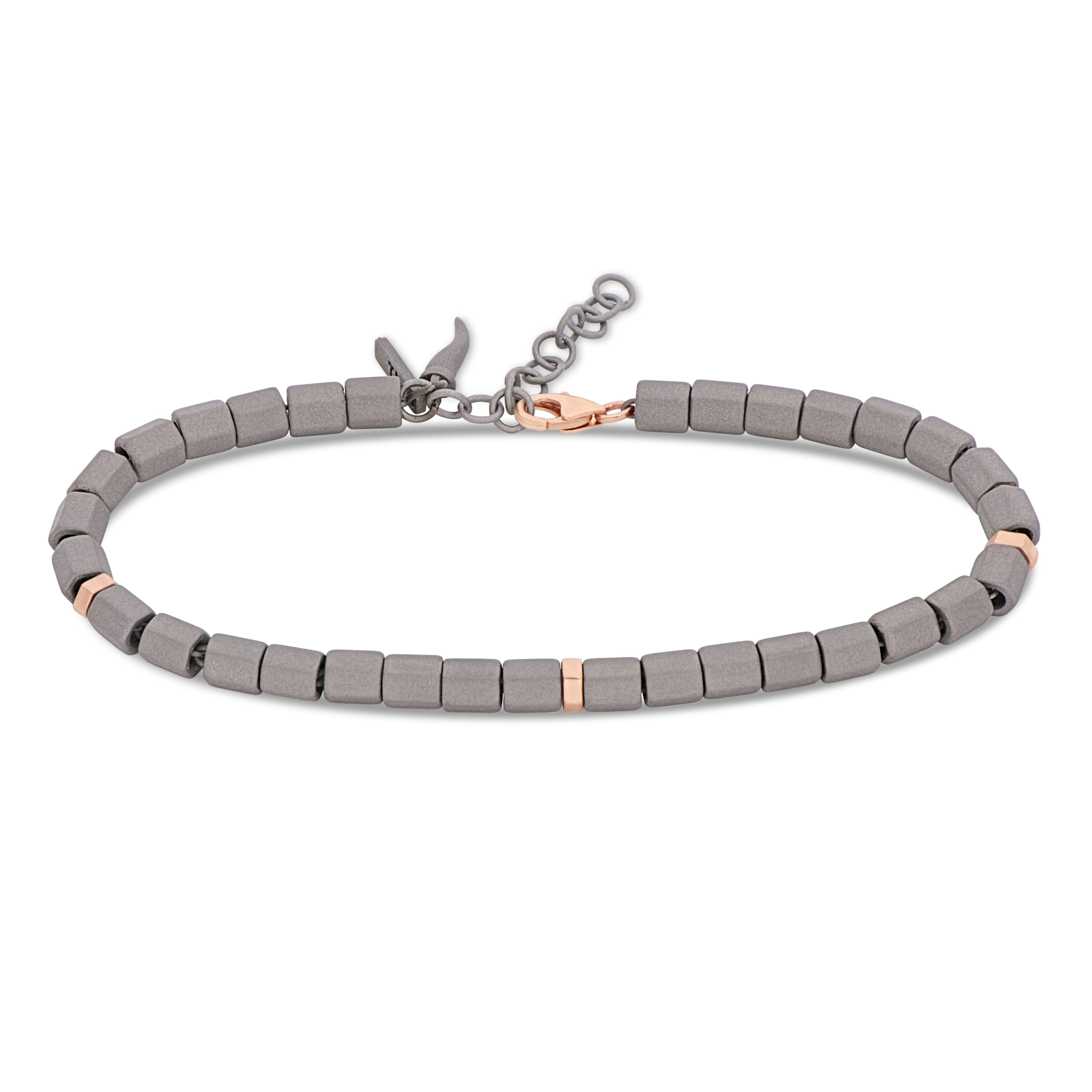 Bracciale della collezione MANO|J., realizzato da esagoni in titanio, tre in oro giallo 9 kt. con diamante nero.