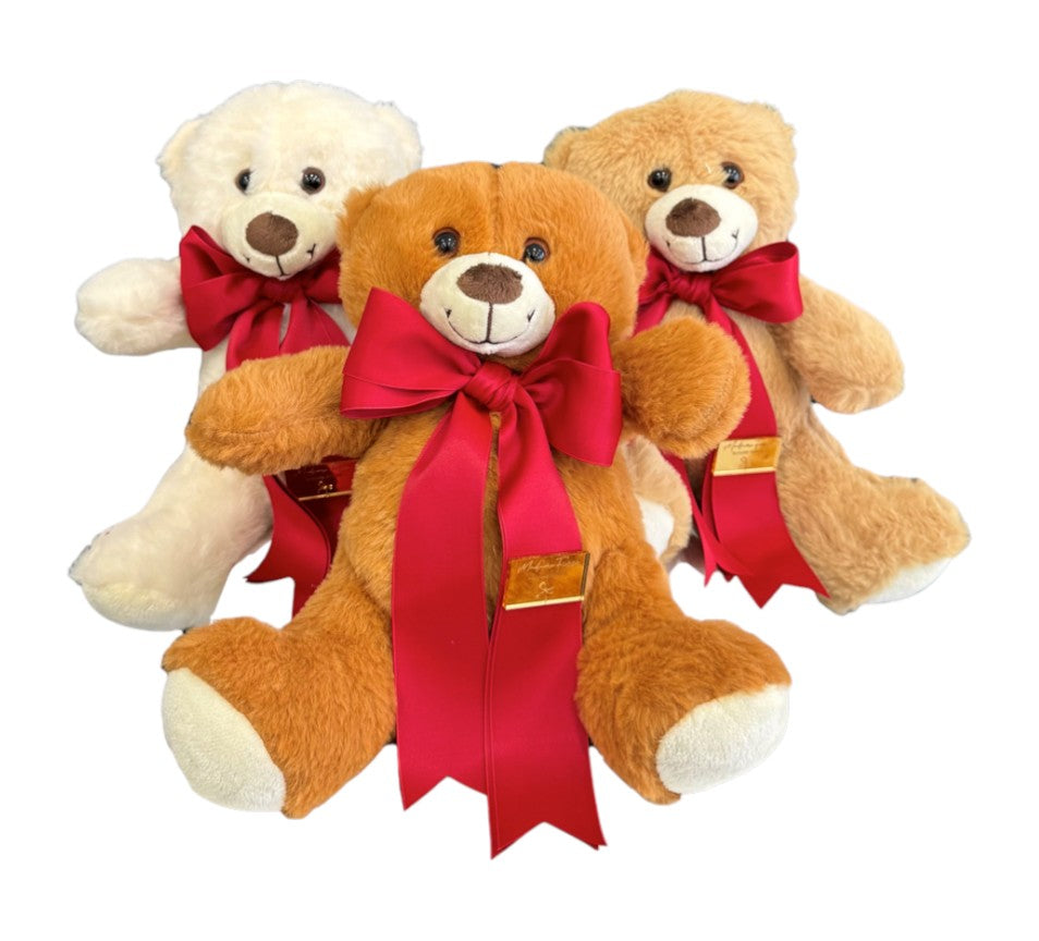 Teddy della collezione Love di Madame Fioccò, realizzato con materiali di qualità assortito in tre colorazioni diverse.