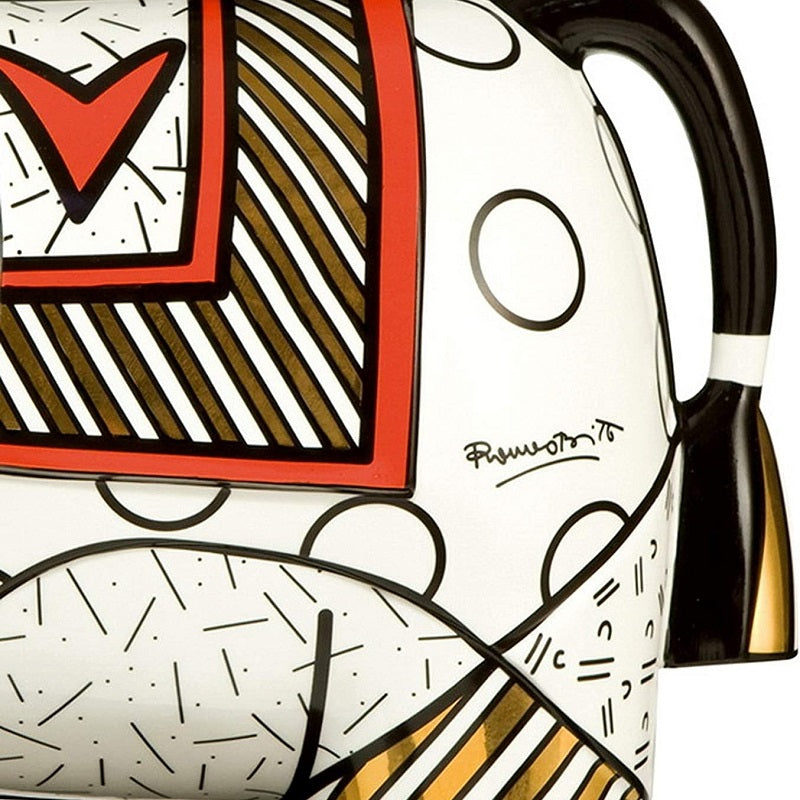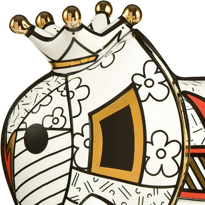Figura Gold della collezione "Britto" di Goebel, firmata dall'artista brasiliano Romero Britto e realizzata in porcellana finemente decorata a mano con colori vivaci.