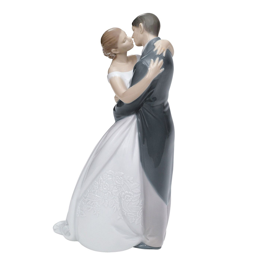 Scultura "A Kiss Forever" Nao, realizzata in porcellana lucida interamente decorata a mano da artigiani spagnoli, rappresentante una coppia di sposini che si baciano.