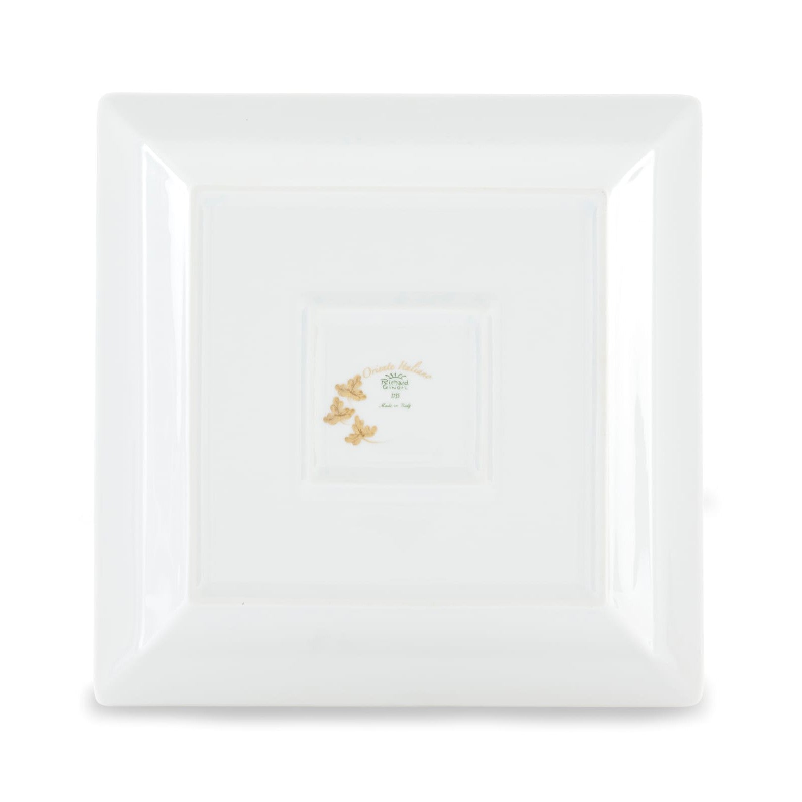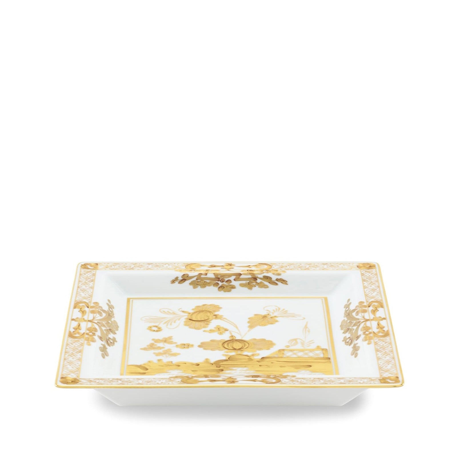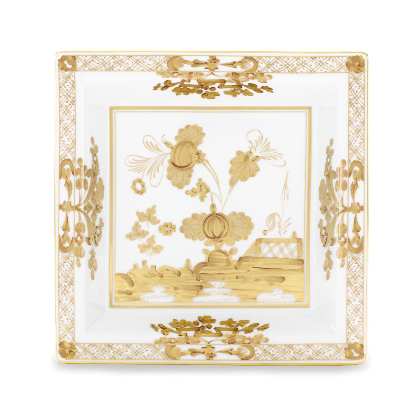 Svuotatasche quadrato della collezione "Oriente Italiano Aurum" di Richard Ginori, realizzato in porcellana decorata lucida.