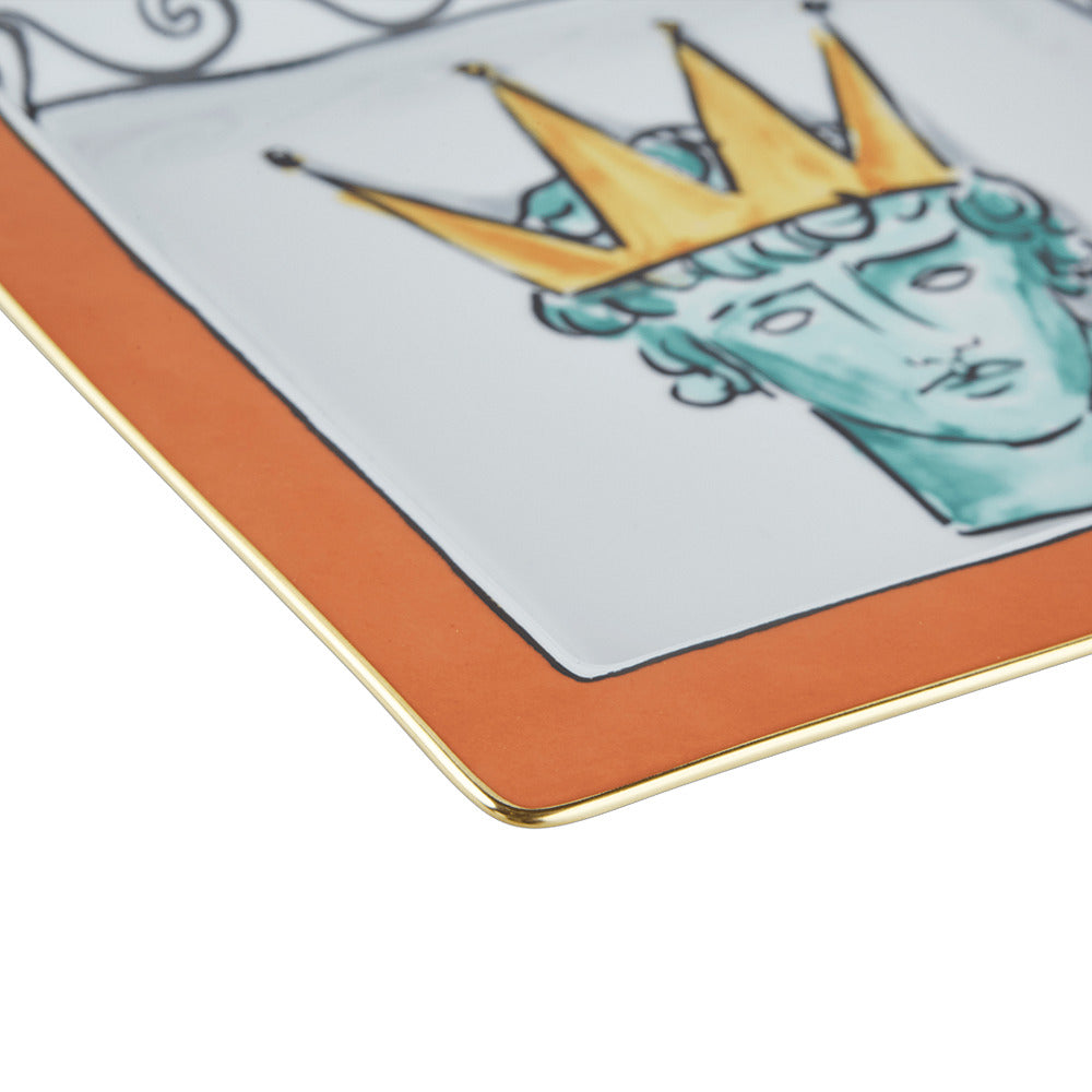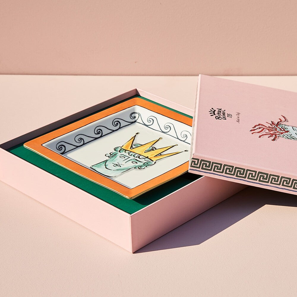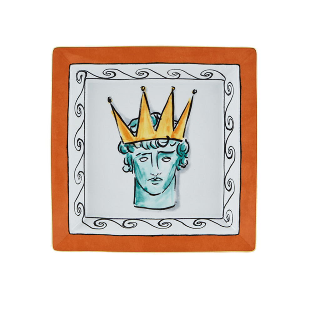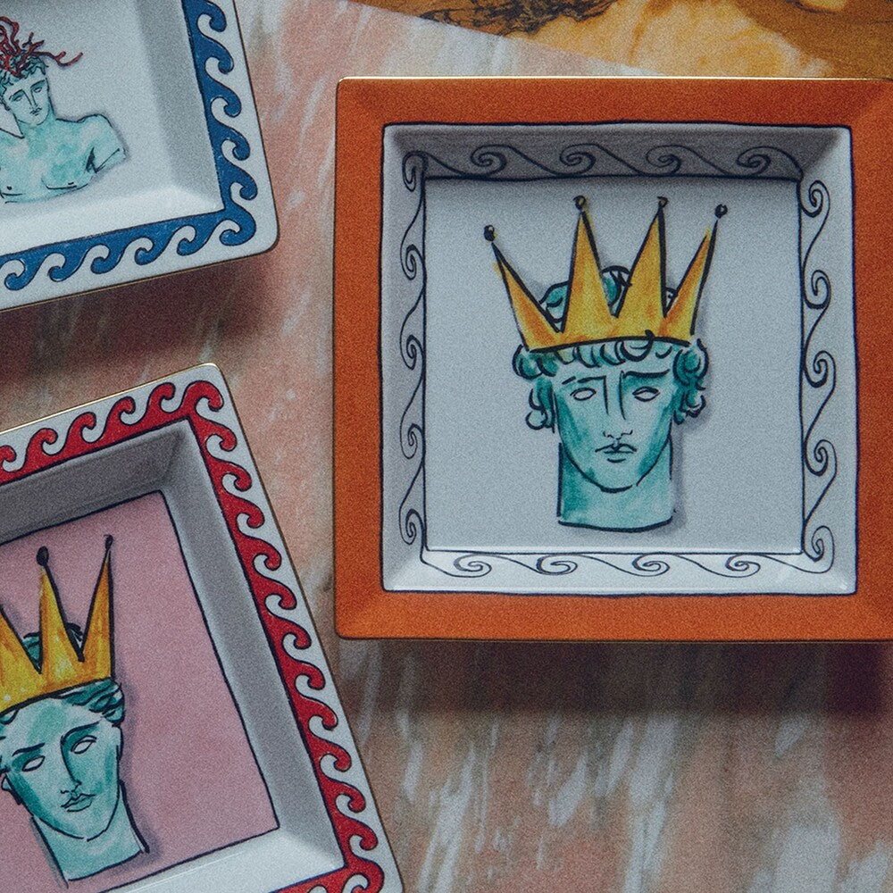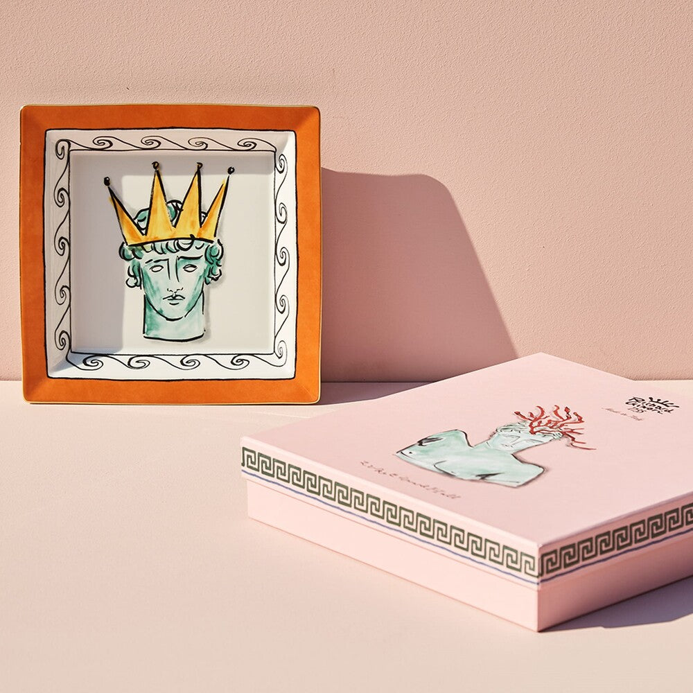 Svuotatasche quadrato della collezione Il Viaggio di Nettuno Rock Orange di Richard Ginori, realizzato in pura porcellana, dipinto a mano.