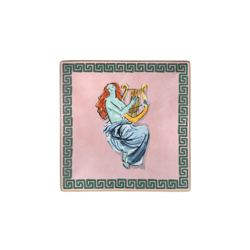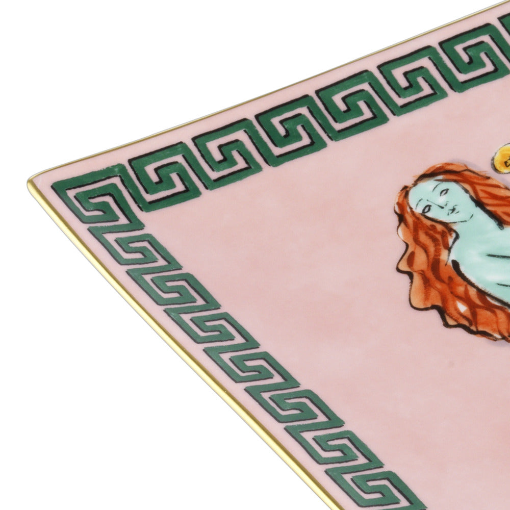 Svuotatasche quadrato della collezione "Il Viaggio di Nettuno Rock Pink” di Richard Ginori, realizzato in pura porcellana, dipinto a mano.