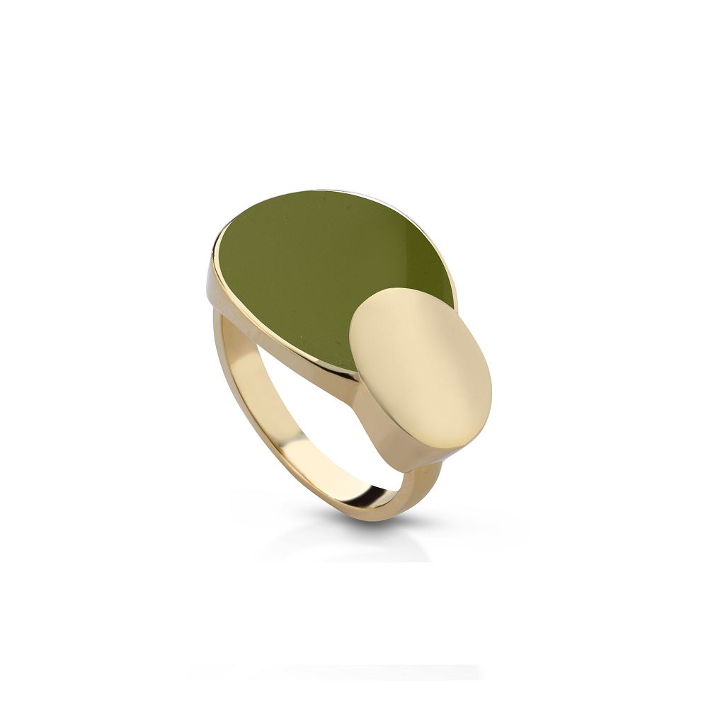 Anello da donna della collezione "Capri" di MEWO GIOIELLI realizzato in acciaio anallergico con finitura dorata e verde smaltata.