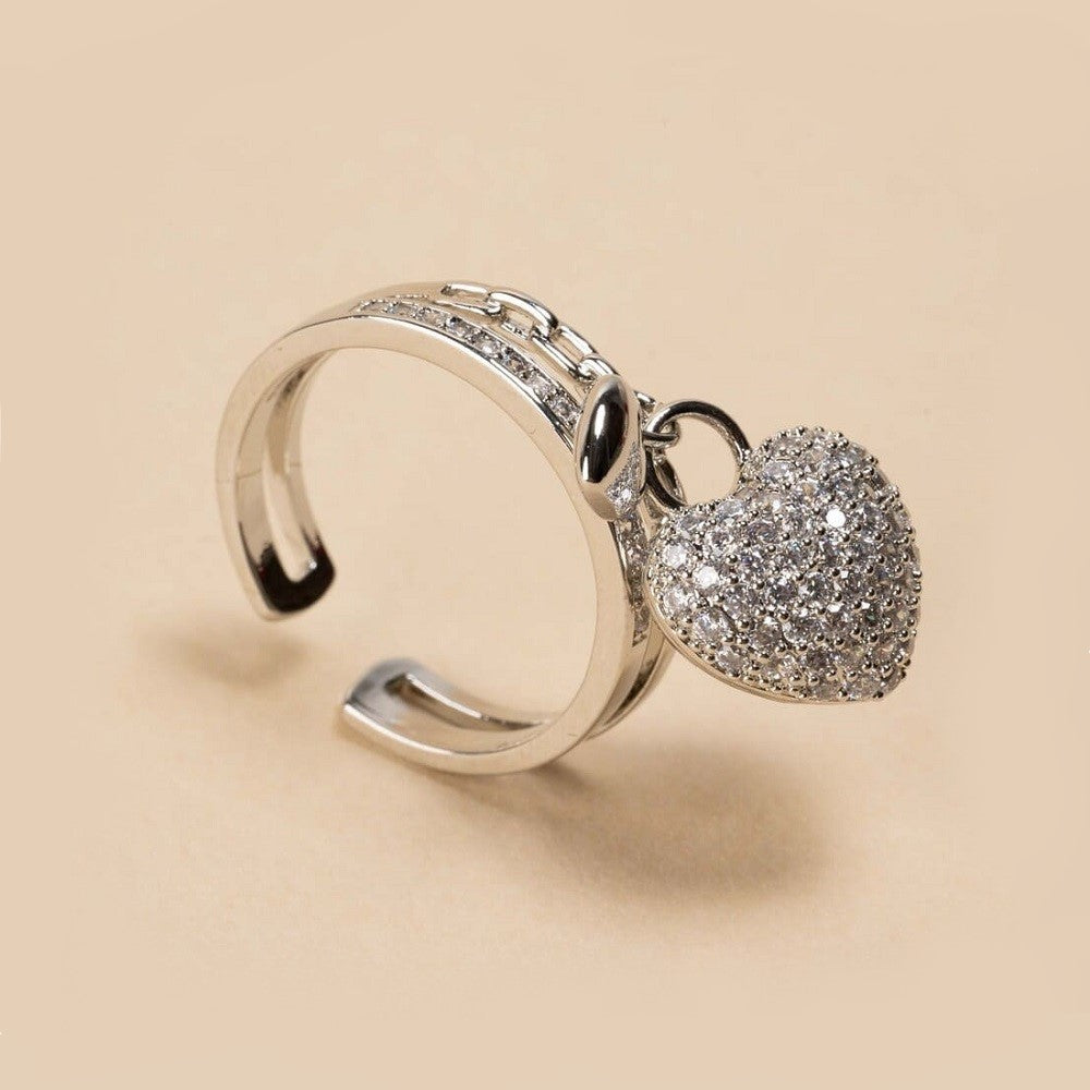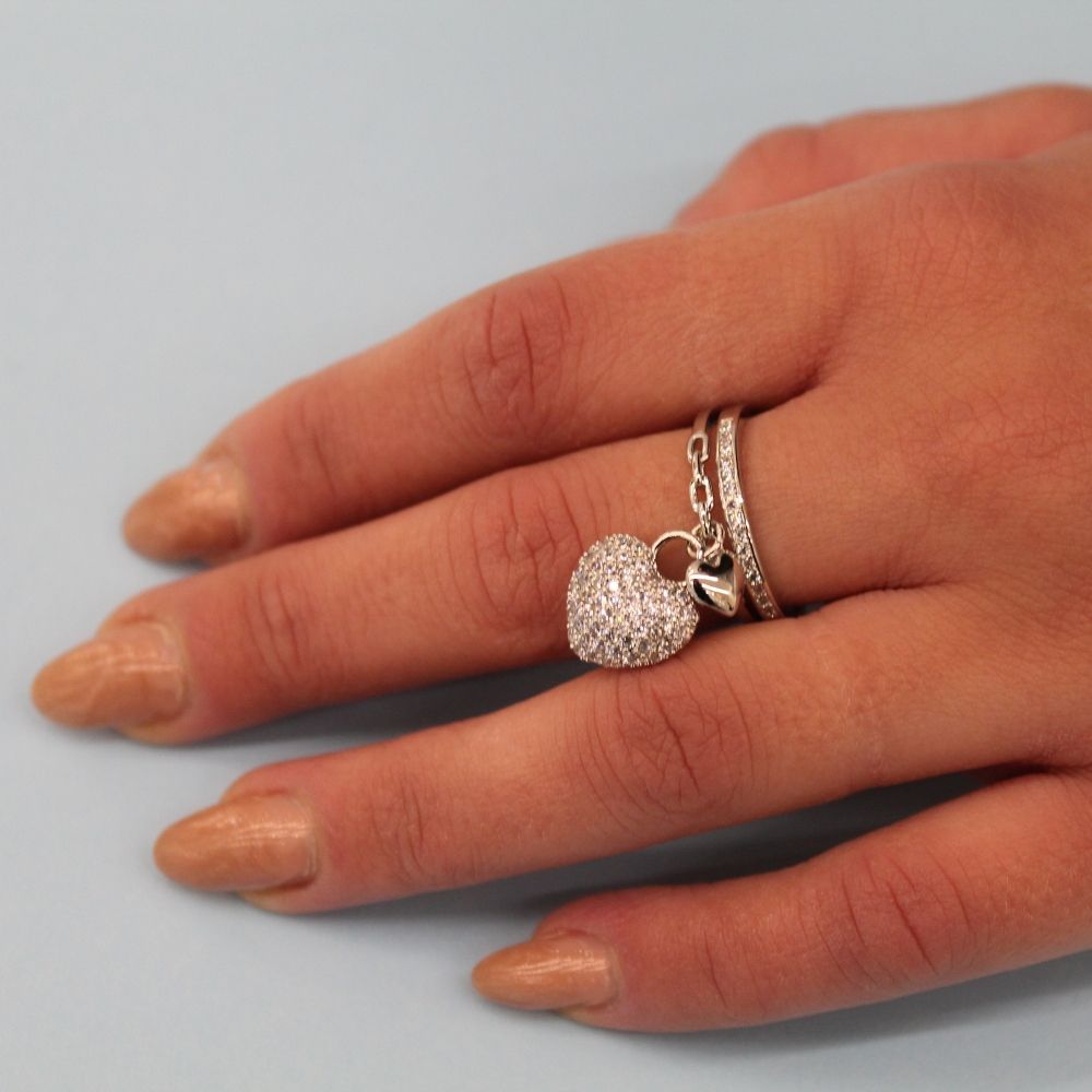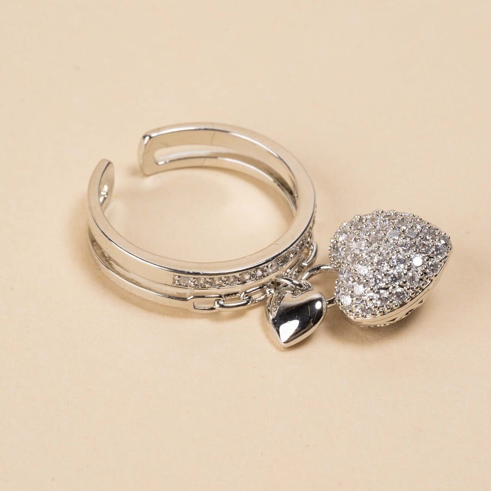 Anello della collezione "Love" di David Jewels, realizzato in ottone placcato in Argento e con cuore pendente impreziosito da Swarovski.