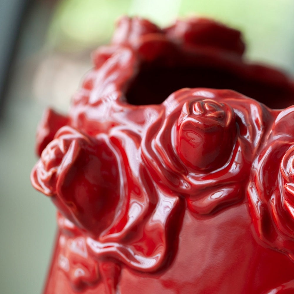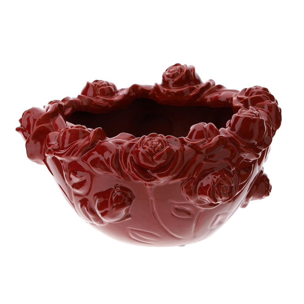 Centrotavola appartenente alla collezione "Grès Stoneware" di Hervit, realizzato in porcellana grès rossa con rose in rilievo.
