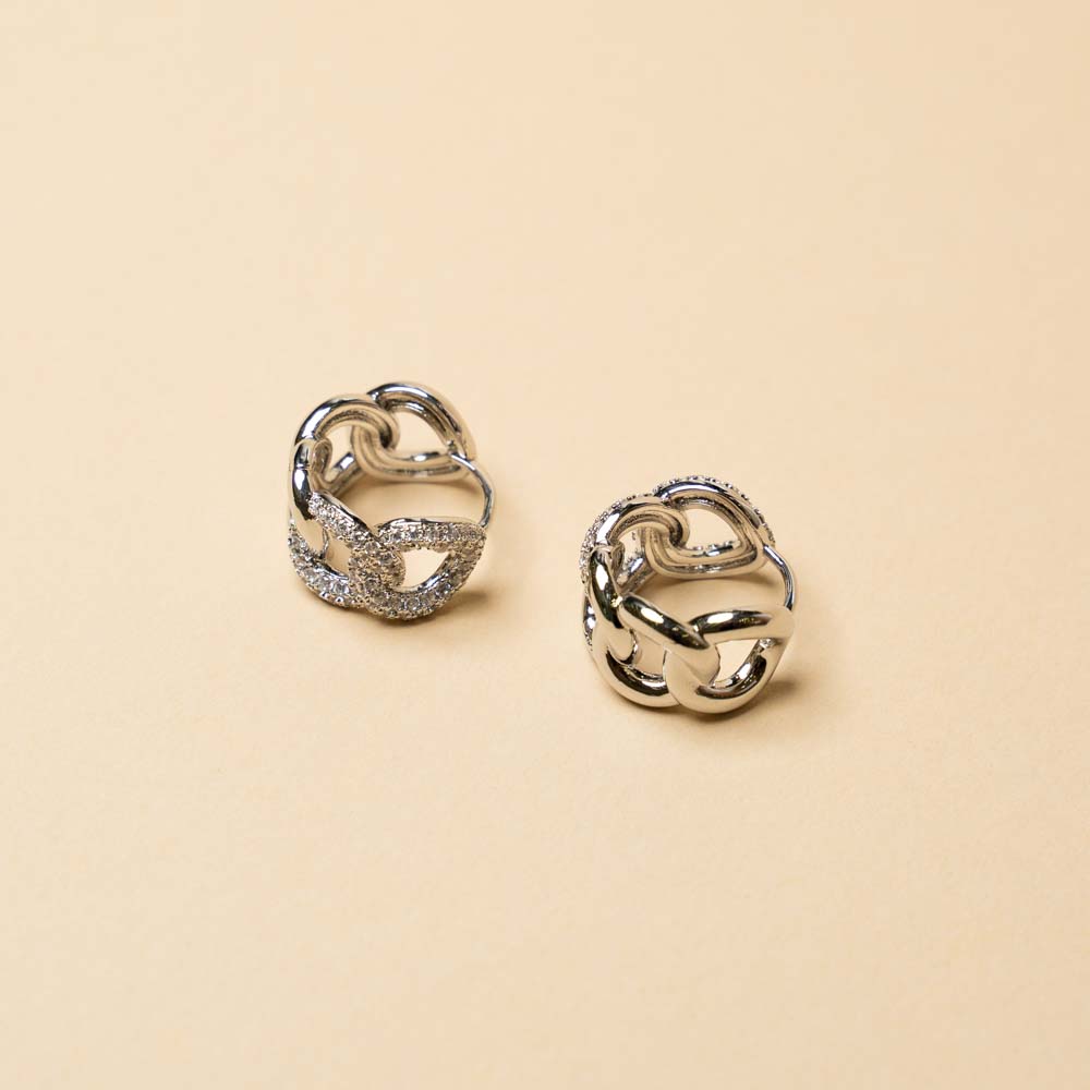 Orecchini modello groumette della linea David Jewels realizzati in acciaio con rodiatura in oro giallo o in argento e tempestati di Swarovski.