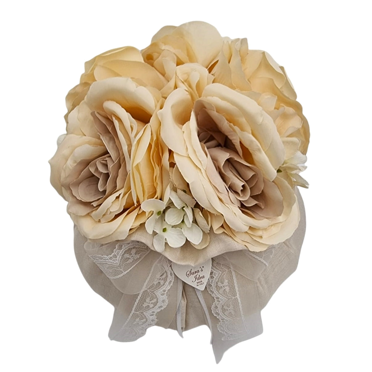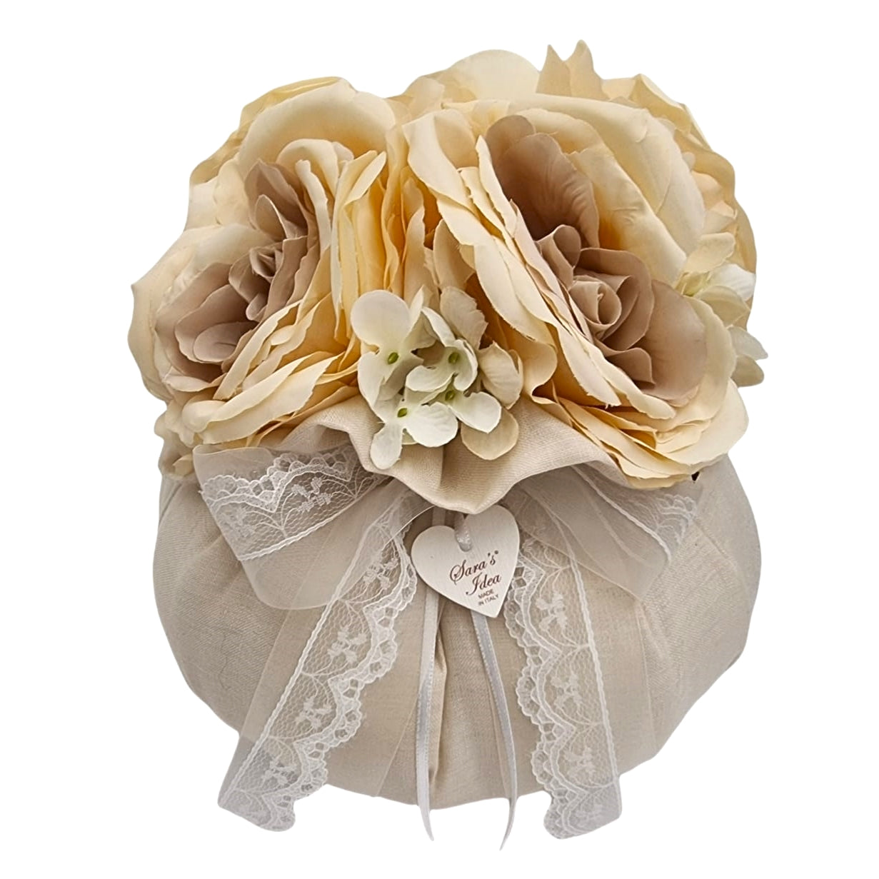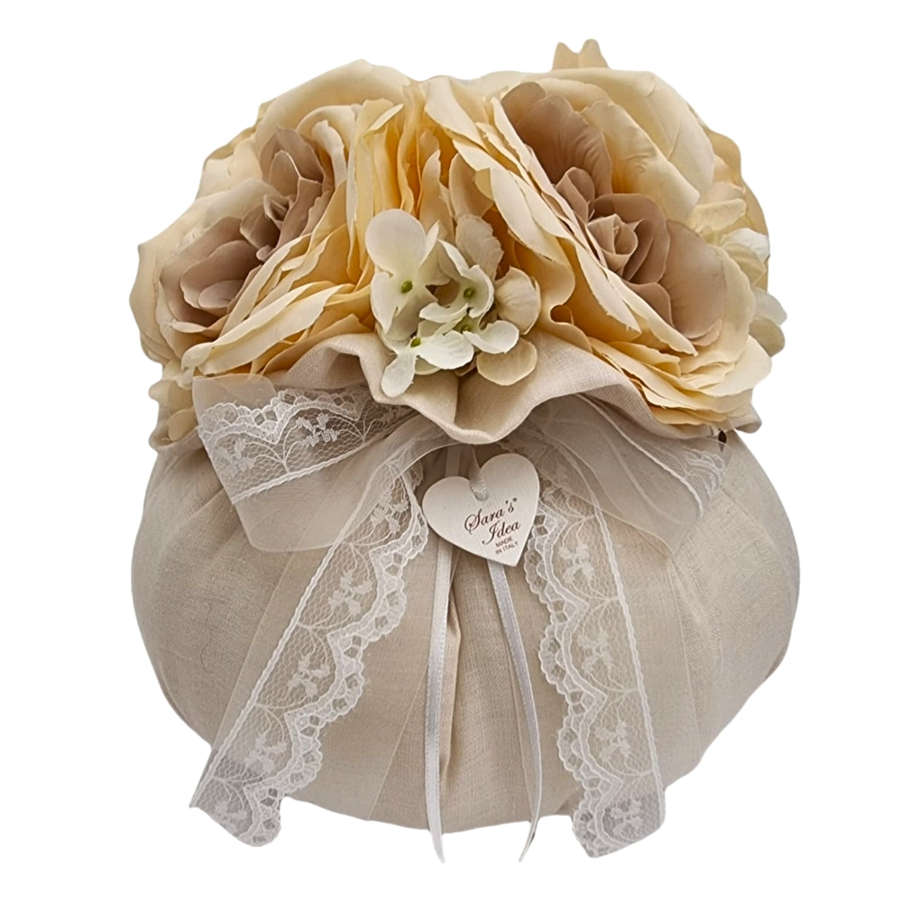 Puff Profumato in lino color champagne con Fiori di Sara's Idea .