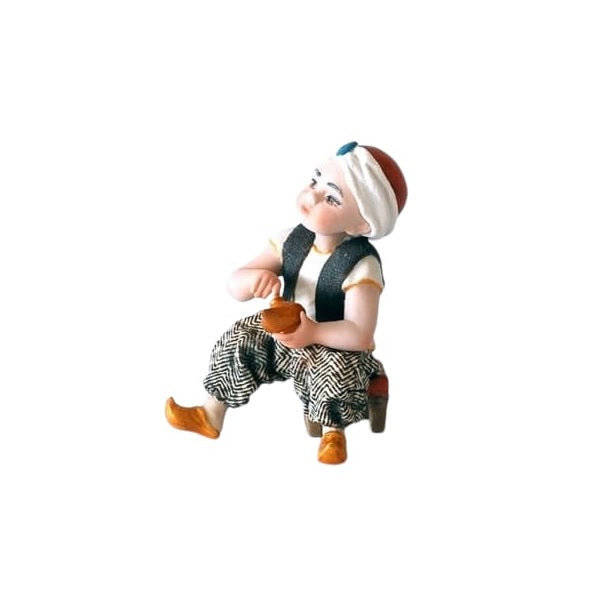 Statuina "Aladino" della collezione di Sibania, realizzata in porcellana vicentina con finitura biscuit decorata a mano.