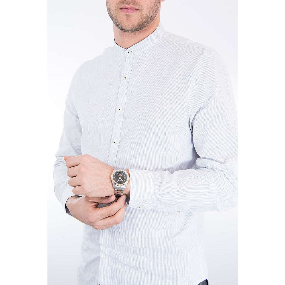 Il quadrante Sunray con datario a ore 3 è caratterizzato da dettagli di colore oro rosa