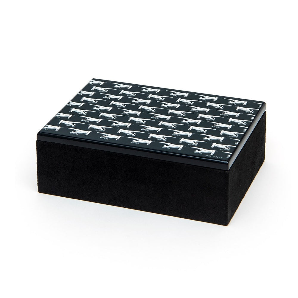 Scatola Portagioie della collezione “Indici” di Sequenze, realizzata in legno laccato decorato artigianalmente.