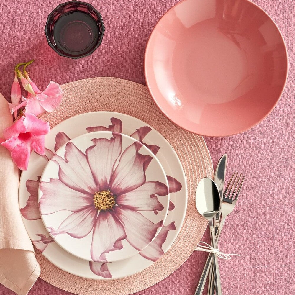 Set piatti 36 pezziper 12 persone appartenente alla collezione "Cosmea" di Rose&Tulipani.